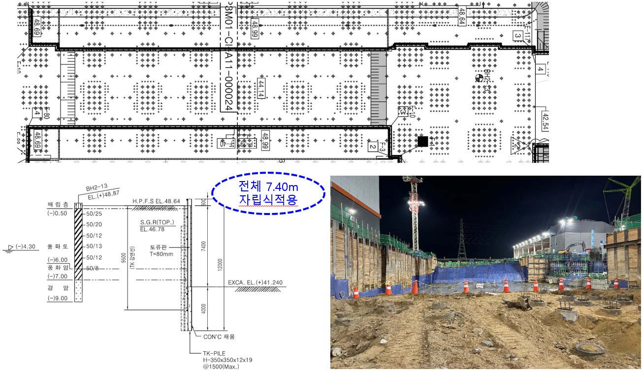 > 흙막이공법 > TK엄지말뚝 공법 > 설계 및 현장적용