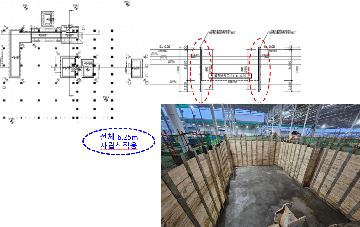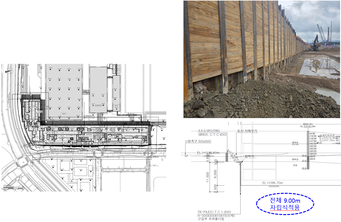 - 부지경계 인접하여 어스앵커 설치 불가 → 전체 자립식 적용