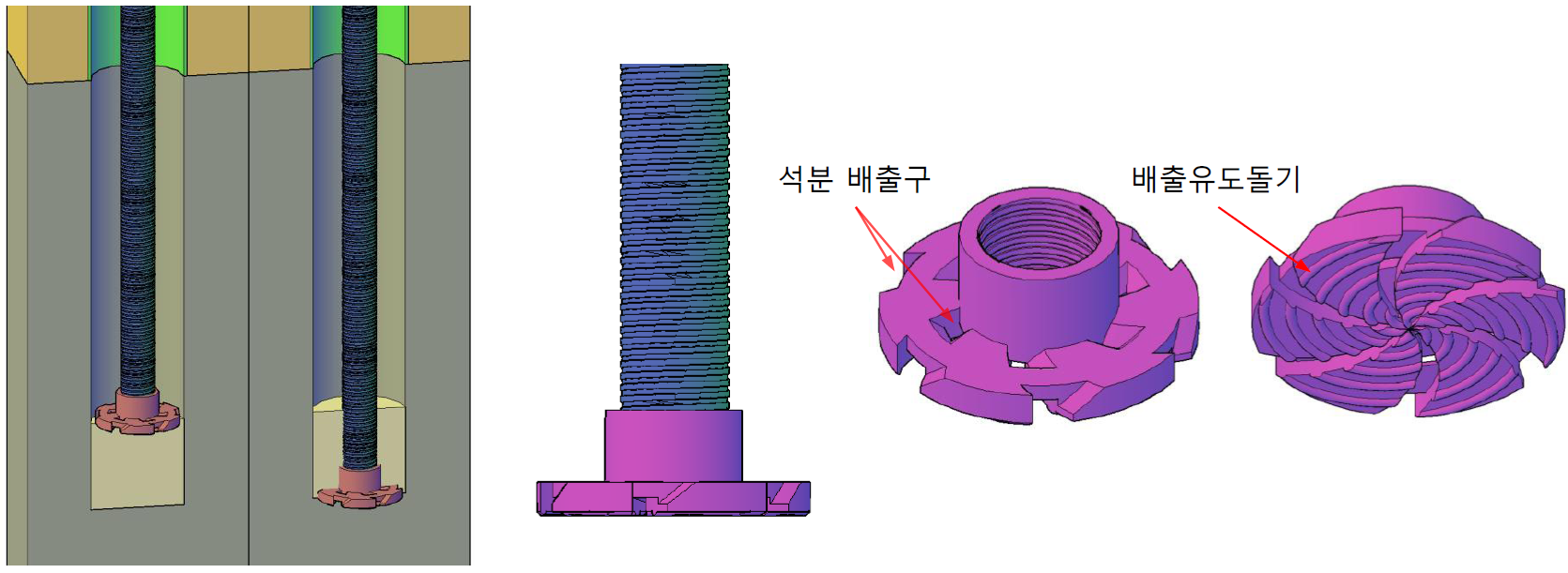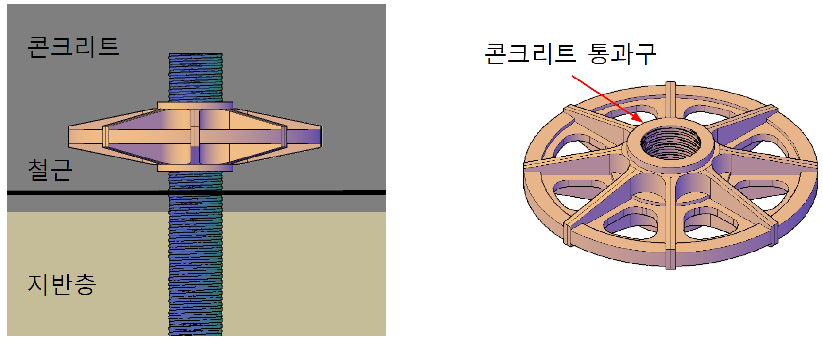 - 두부 콘크리트 타설 시 통과구를 통해 하부로 콘크리트가 원활하게 통과, 마이크로파일과 콘크리트가 건전하게 일체화됨