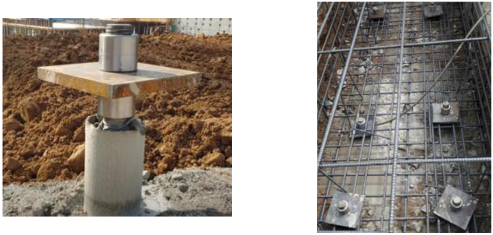 두부 콘크리트와 일체화시키는 방법을 사용하고 있으나, 일체화를 위한 하부철근이 교차하여 통과하는 지압판-지반층간 공간이 협소하여