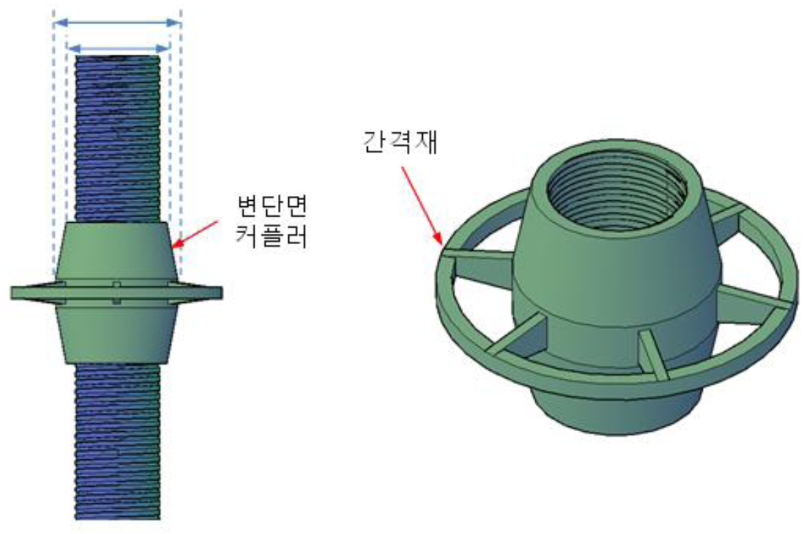 - 커플러 외측에 간격재 일체형 설계 가능, 금속재 제작으로 강성 확보