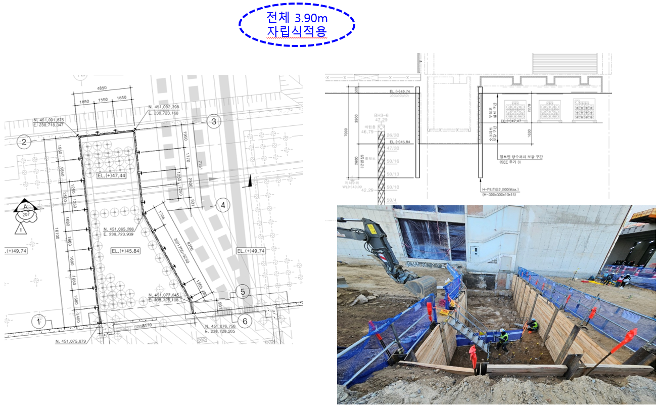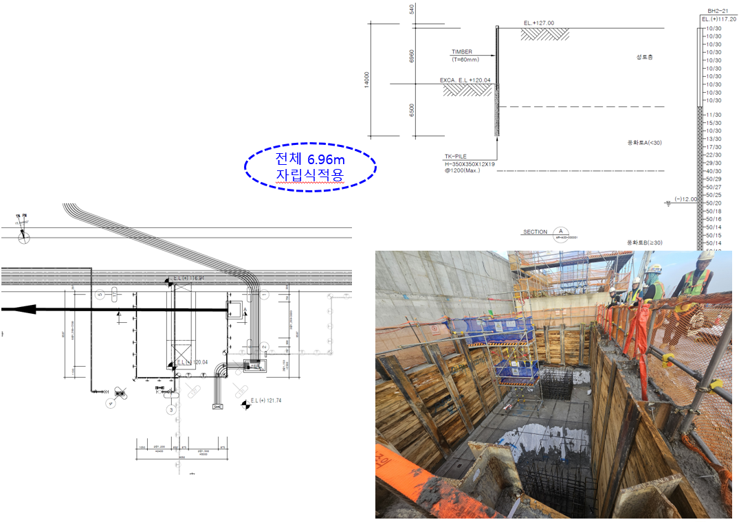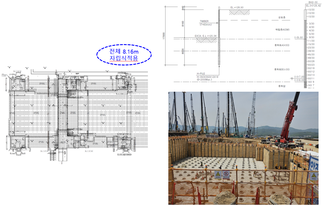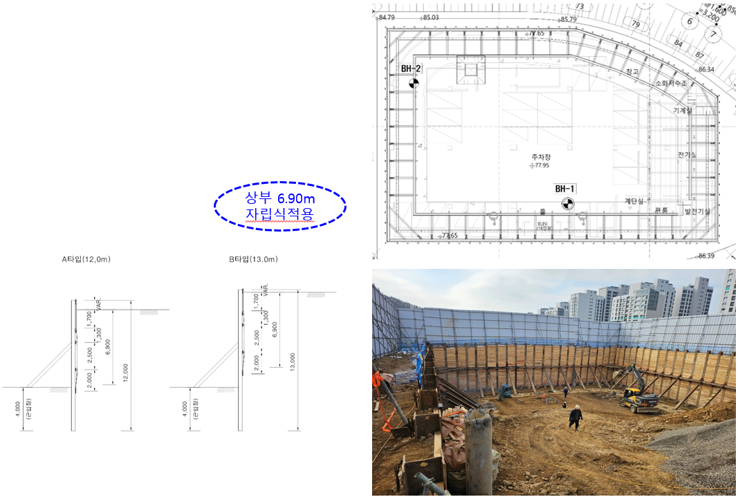 - 부지경계 인접하여 어스앵커 설치 불가 → 전체 자립식 적용